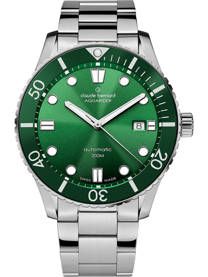 The Aquarider Automatic Date watch from Claude Bernard is a must-have for divers. With a water resistance of up to 200 meters/20 ATM and a durable diving bezel, this timepiece is designed to withstand the underwater conditions. Plus, the luminescent hands and indices make it easy to read in any lighting. Trust in this expertly crafted watch for all your diving adventures.
