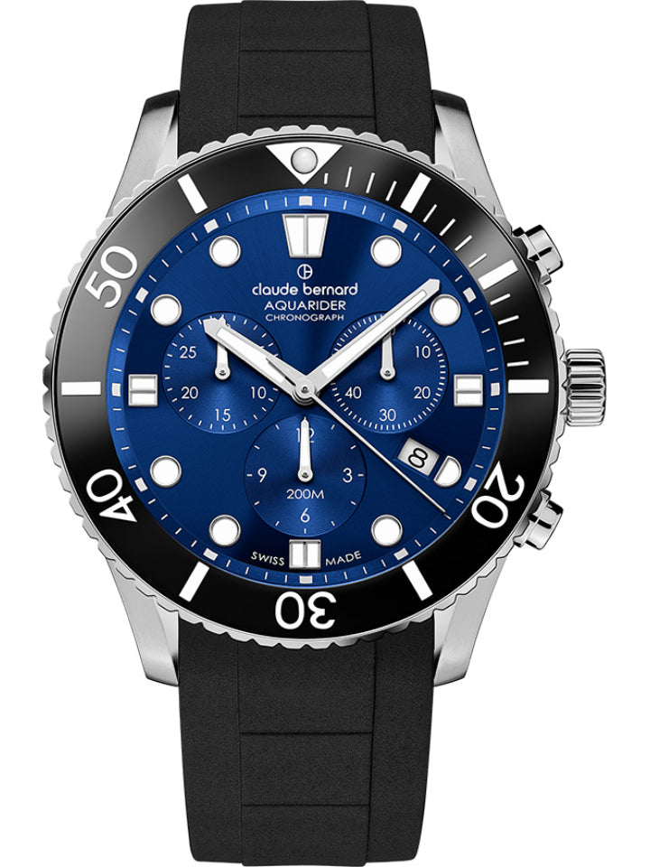 With a water resistance of 200 metres / 20 ATM, the Claude Bernard Aquarider Chronograph is perfect for all your diving needs. The luminescent hands and indices ensure readability in low light conditions, while the diving bezel adds functionality to your underwater adventures.