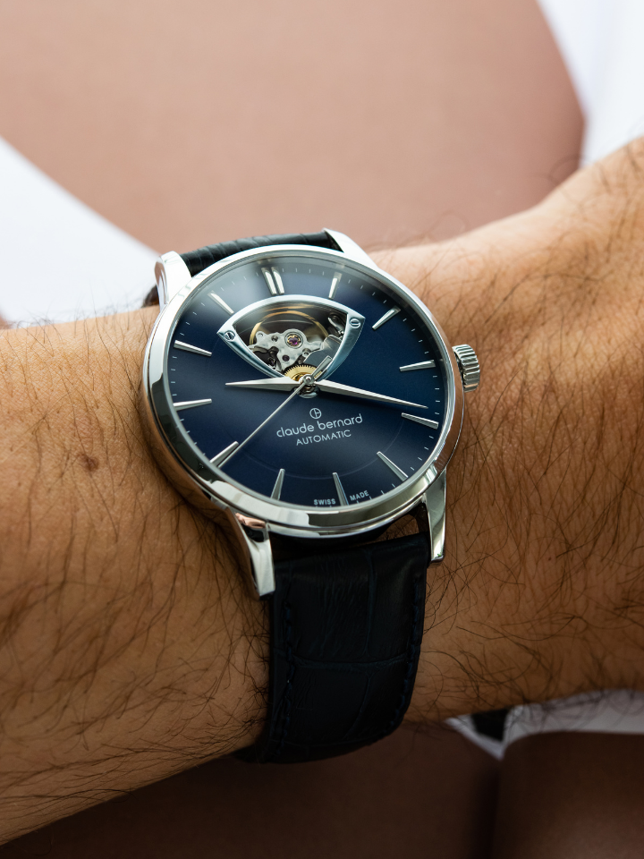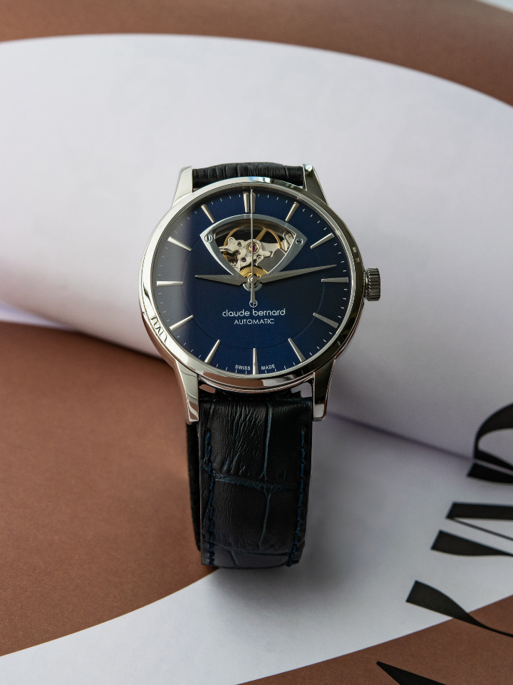 This Claude Bernard Classic Automatic Open Heart watch showcases an open heart dial to view the captivating heartbeat of the timepiece. With a transparent caseback, this elegant watch offers a unique and sophisticated touch to your style. A must-have for any watch enthusiast.