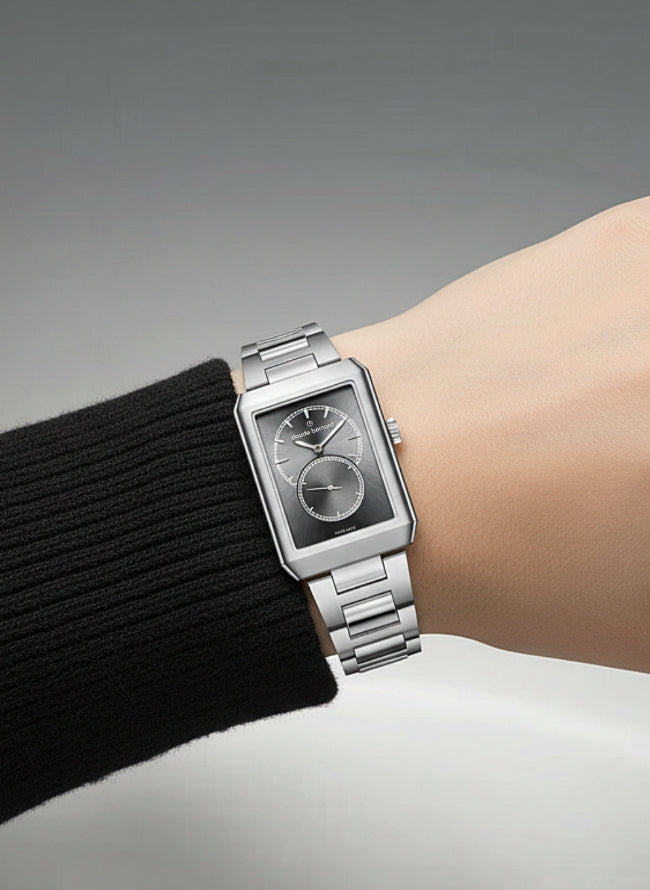 The Claude Bernard Ora Vera features a refined rectangular case and a small seconds subdial inspired by classic watchmaking. Its slim profile and clean design make it an ideal dress watch for formal occasions and everyday elegance.